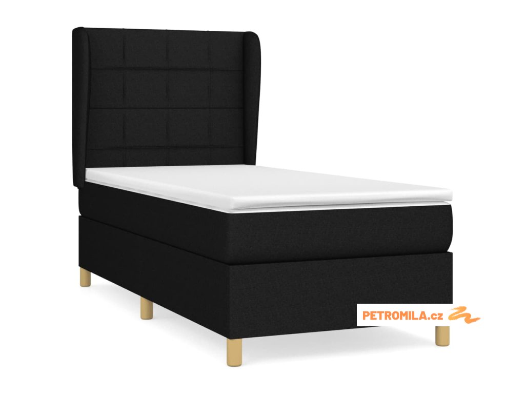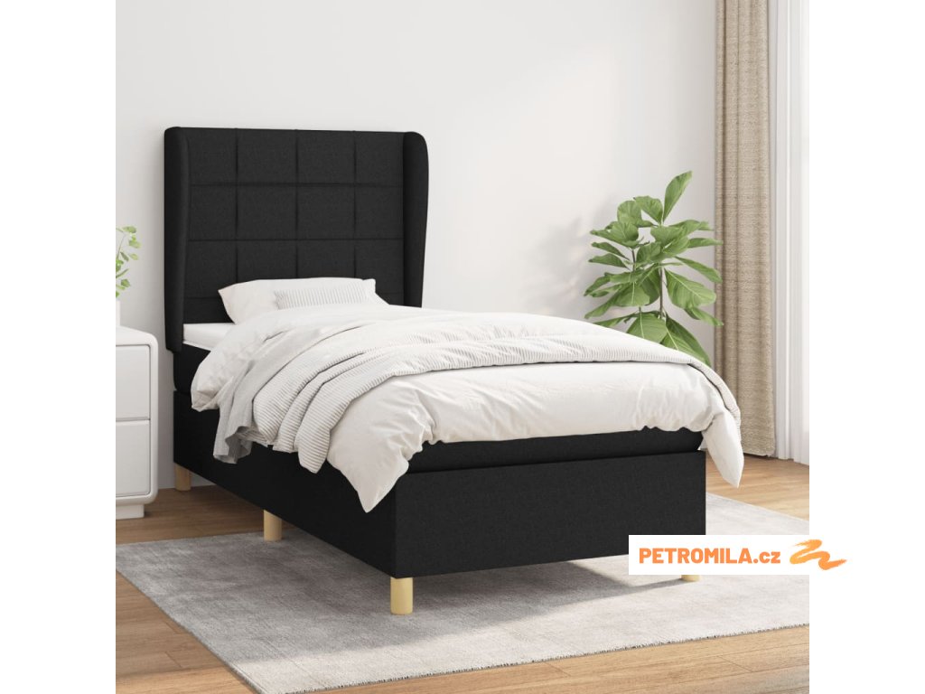 Box spring postel s matrací černá 90x200 cm textil