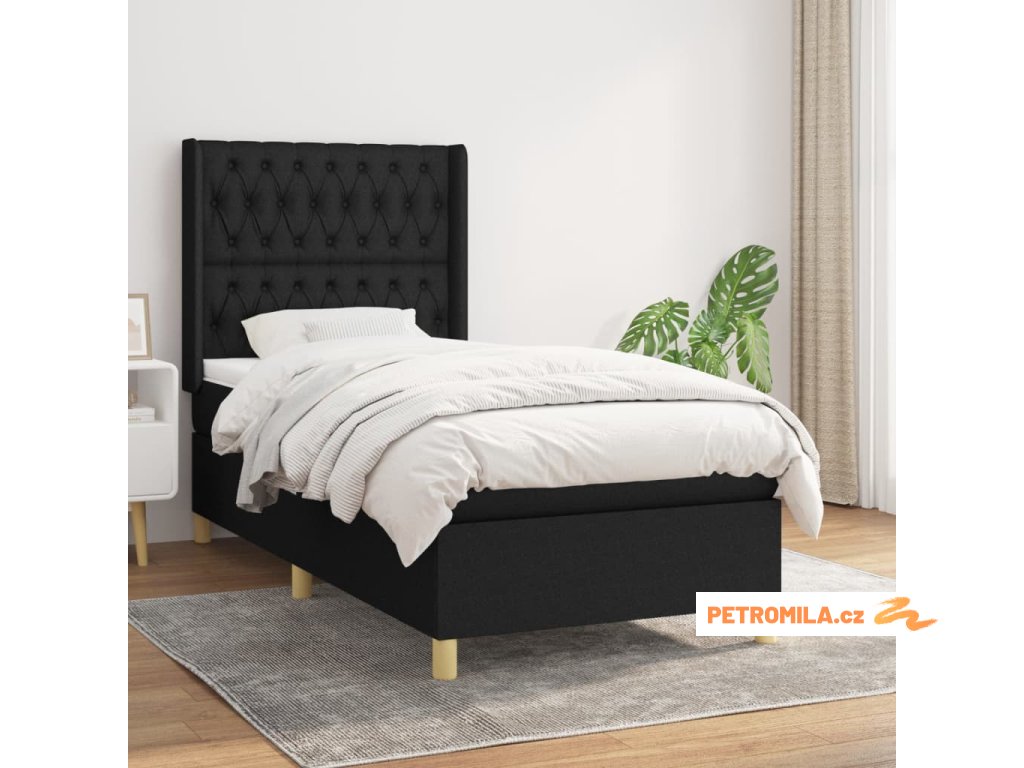 Box spring postel s matrací černá 90x200 cm textil
