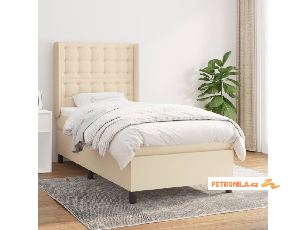 Box spring postel s matrací krémová 100 x 200 cm textil