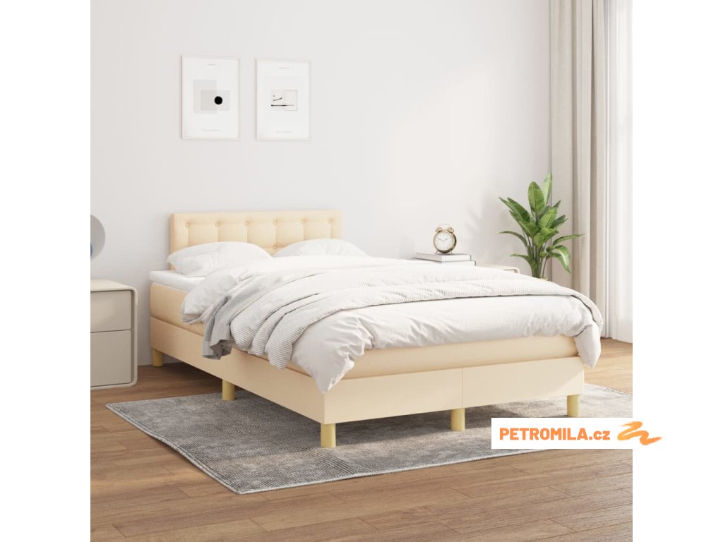 Box spring postel s matrací krémová 120x200 cm textil