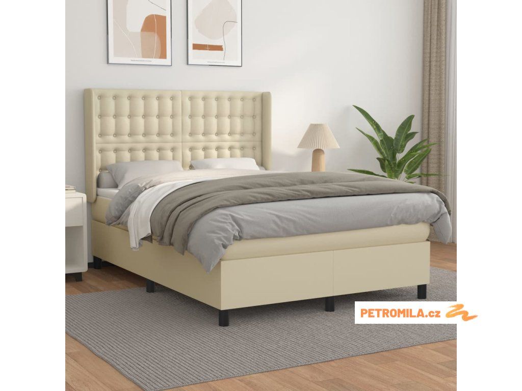 Box spring postel s matrací krémová 140x190 cm umělá kůže