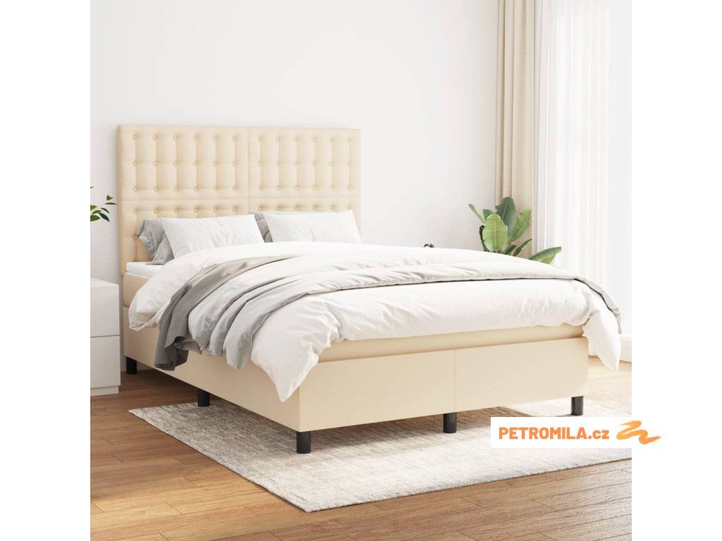 Box spring postel s matrací krémová 140x200 cm textil