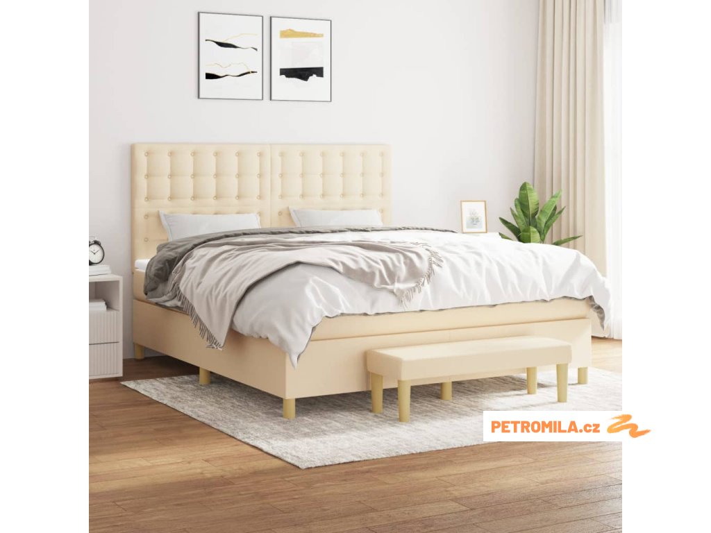 Box spring postel s matrací krémová 180x200 cm textil