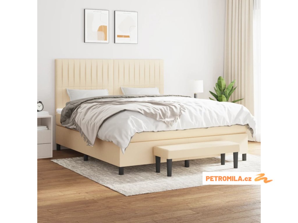 Box spring postel s matrací krémová 180x200 cm textil