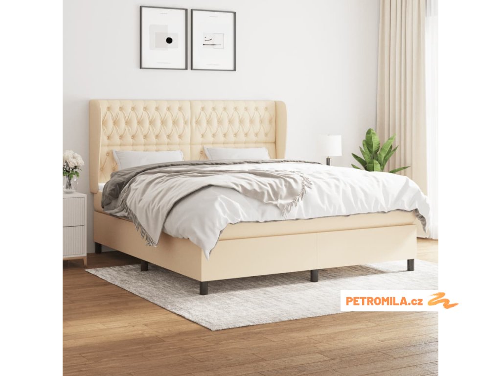 Box spring postel s matrací krémová 180x200 cm textil