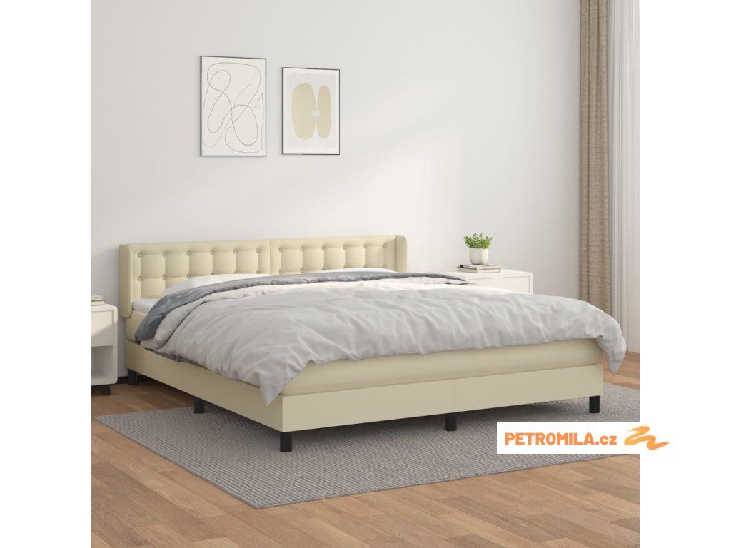 Box spring postel s matrací krémová 180x200 cm umělá kůže