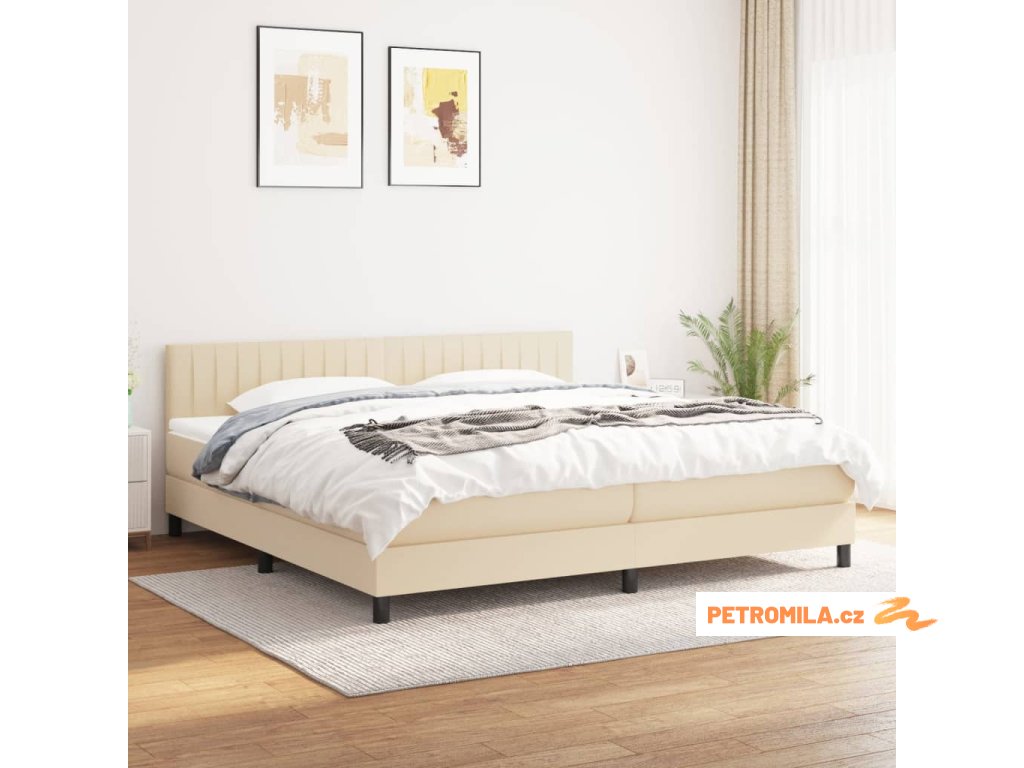 Box spring postel s matrací krémová 200x200 cm textil