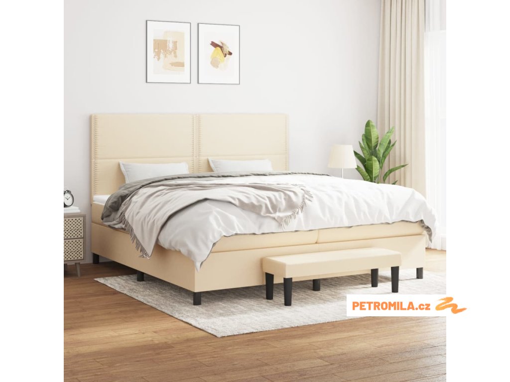 Box spring postel s matrací krémová 200x200 cm textil