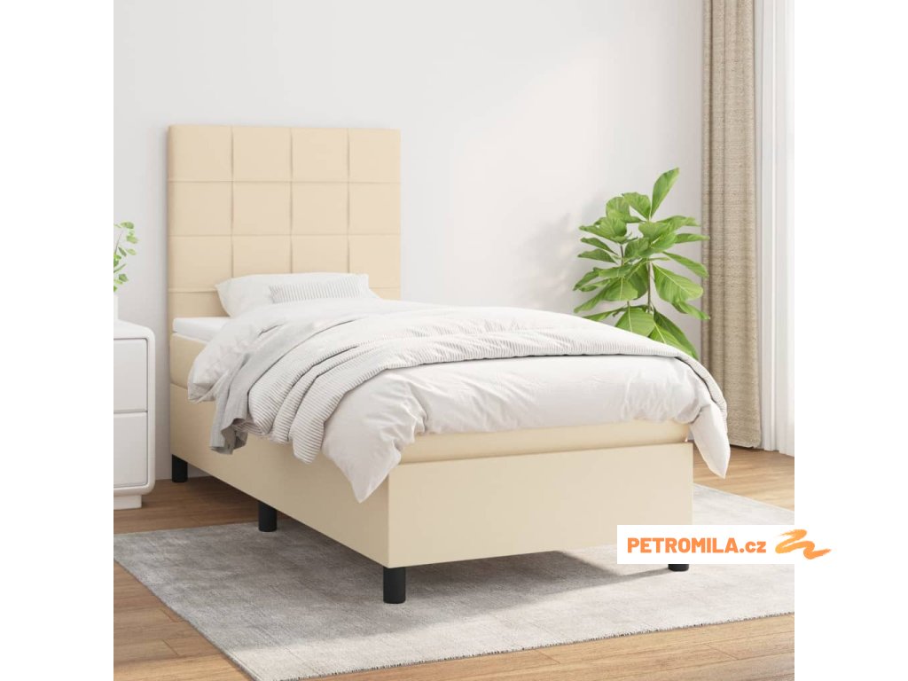 Box spring postel s matrací krémová 90x190 cm textil