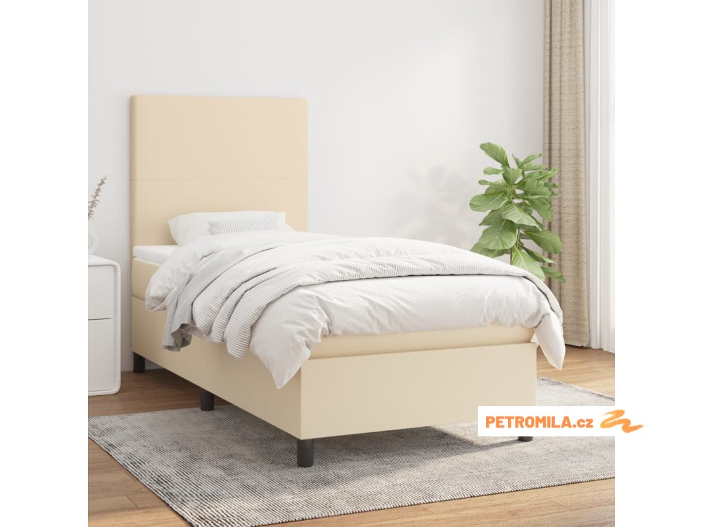 Box spring postel s matrací krémová 90x200 cm textil