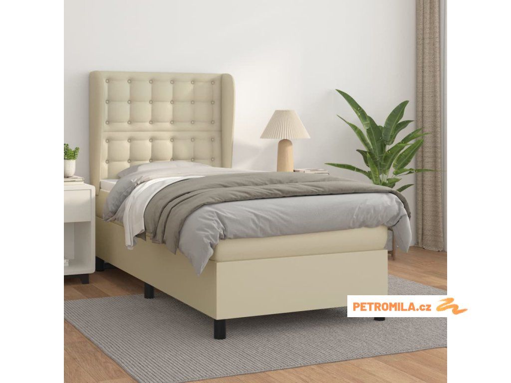 Box spring postel s matrací krémová 90x200 cm umělá kůže