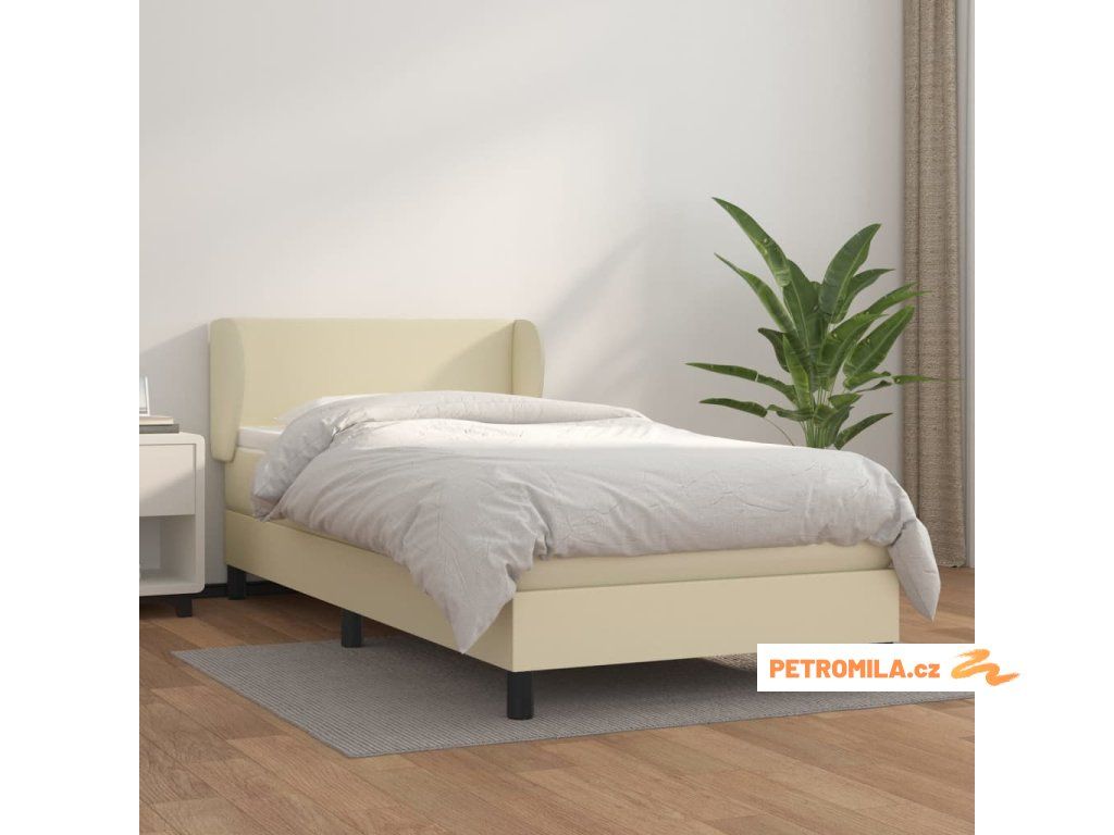 Box spring postel s matrací krémová 90x200 cm umělá kůže