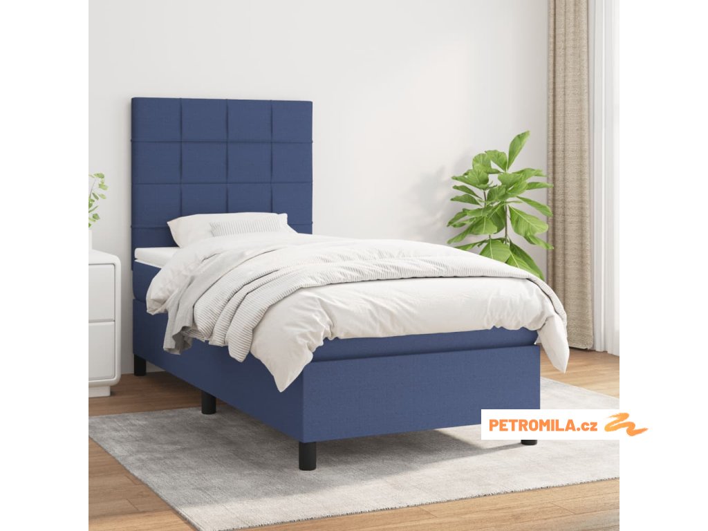 Box spring postel s matrací modrá 100 x 200 cm textil
