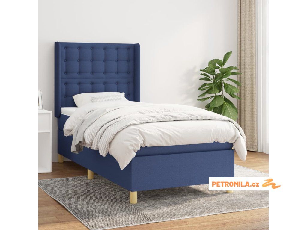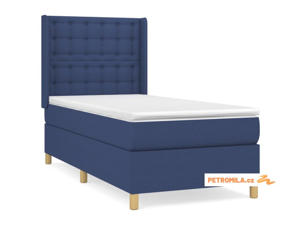 Box spring postel s matrací modrá 100 x 200 cm textil