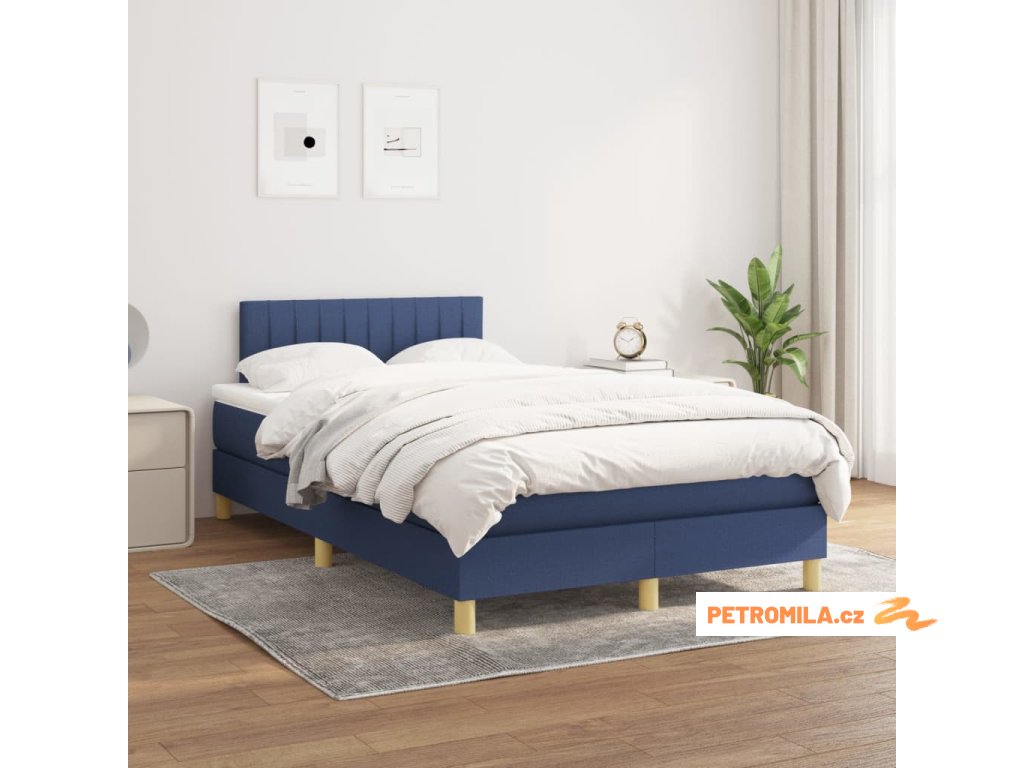 Box spring postel s matrací modrá 120x200 cm textil