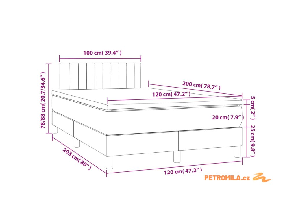 - Rozměry: 120 x 200 x 20 cm (Š x D x V)