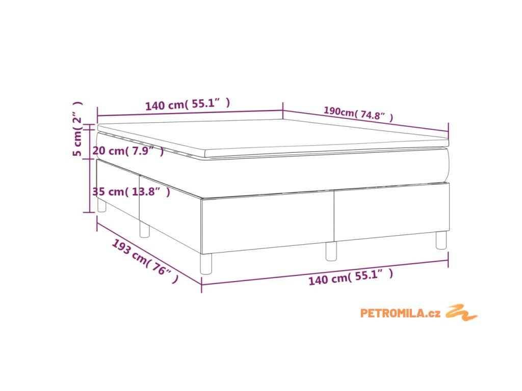 • Rozměry: 140 x 190 x 20 cm (Š x D x V)
