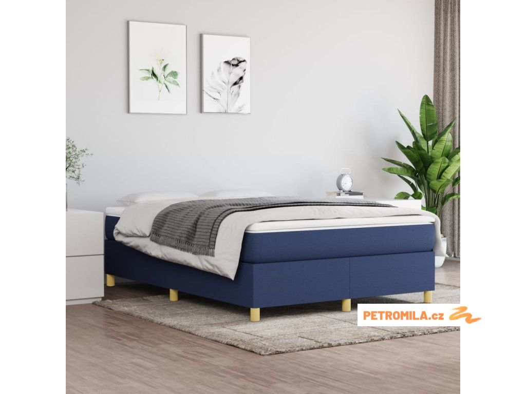 Box spring postel s matrací modrá 140x190 cm textil