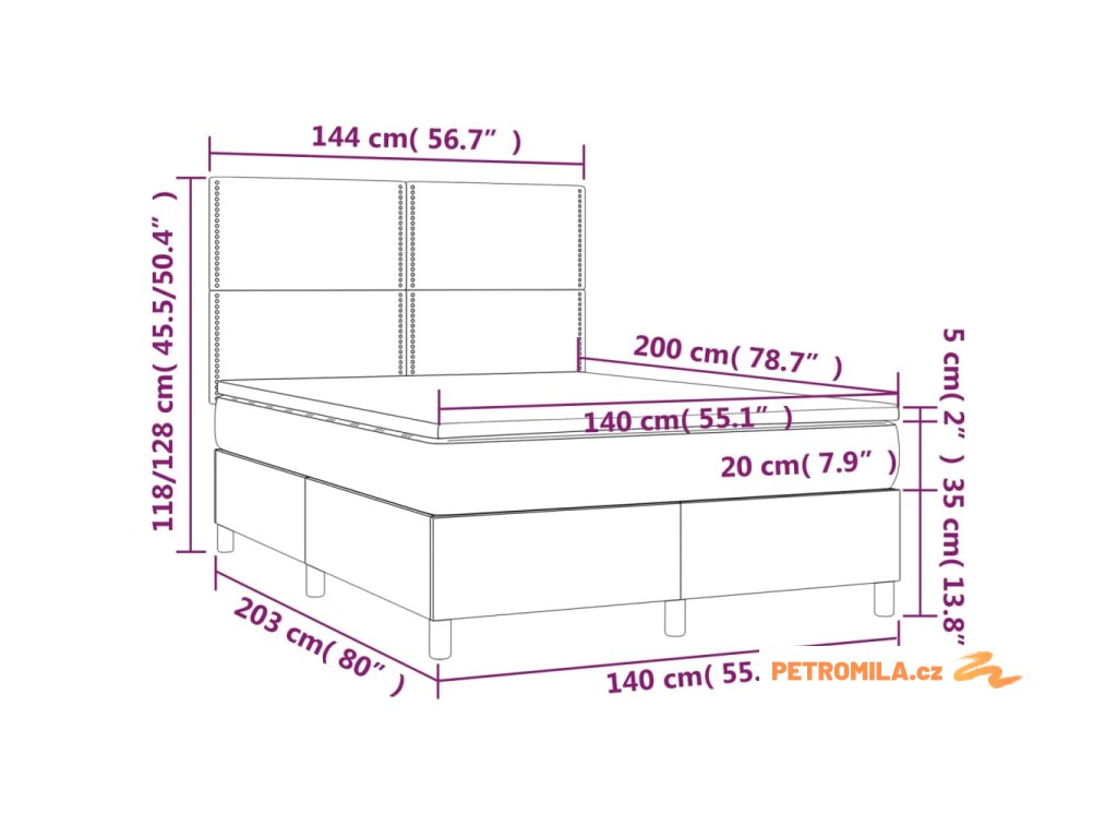 - Rozměry: 140 x 200 x 20 cm (Š x D x V)