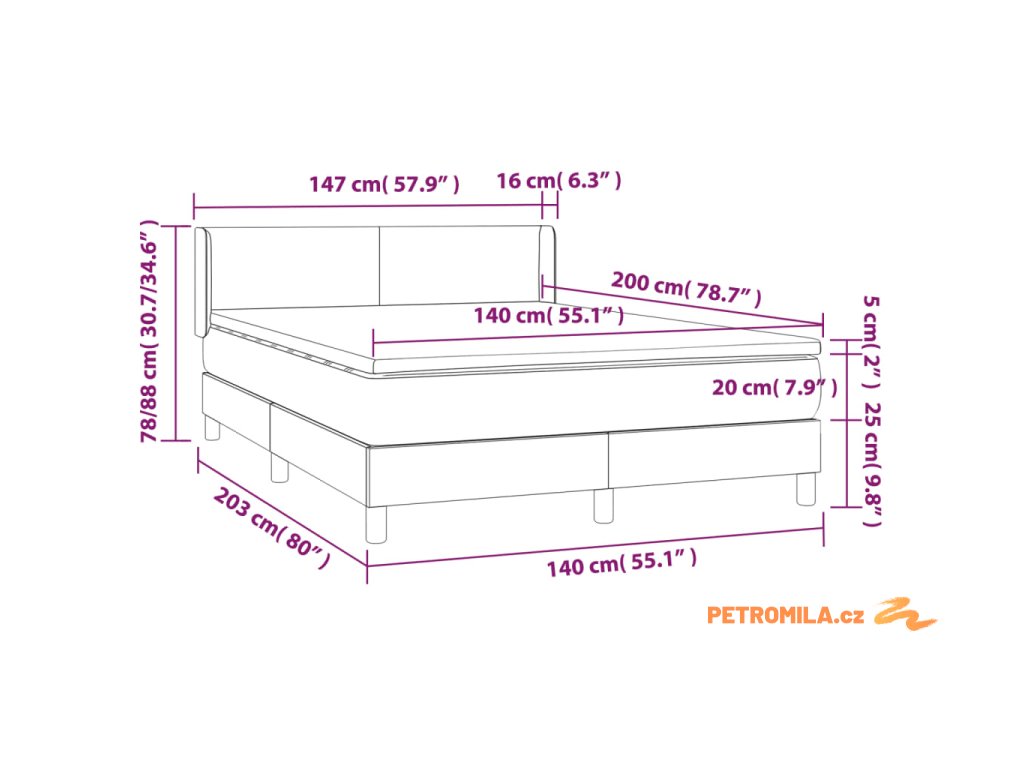 - Rozměry: 140 x 200 x 20 cm (Š x D x V)