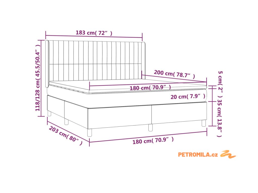 - Rozměry: 203 x 163 x 118/128 cm (D x Š x V)