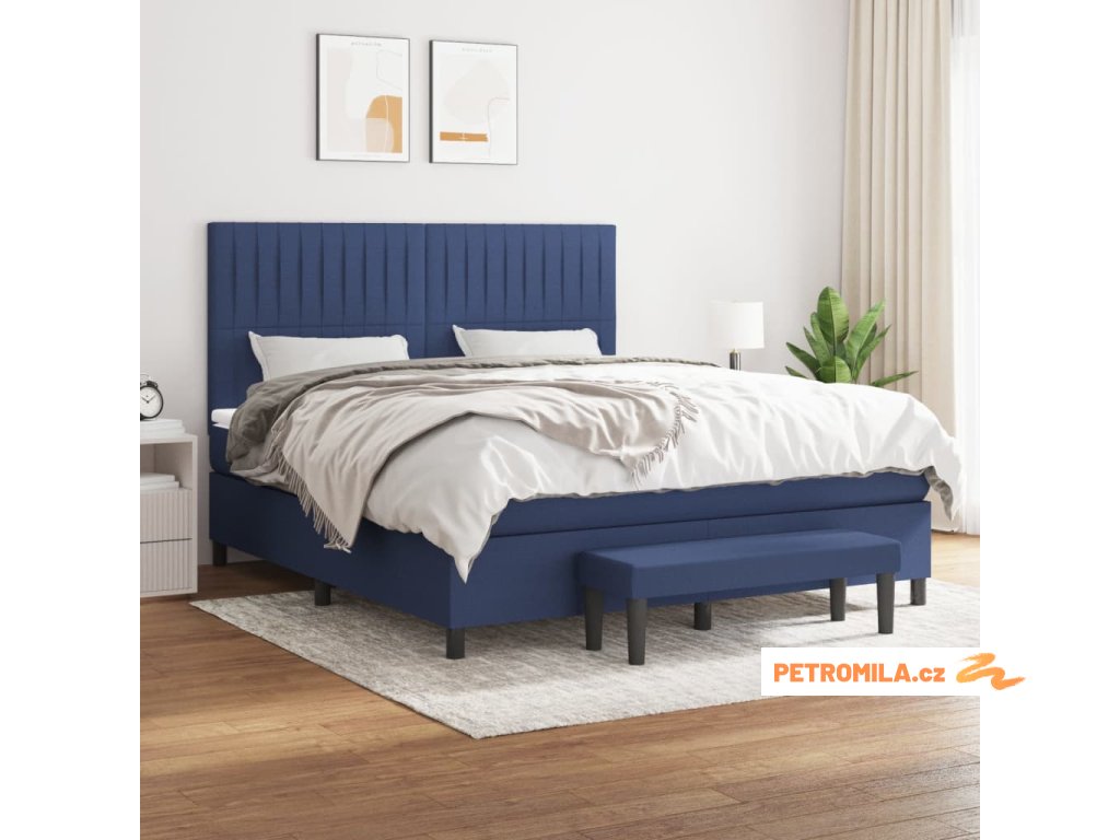 Box spring postel s matrací modrá 180x200 cm textil