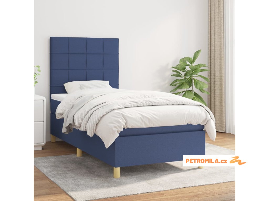Box spring postel s matrací modrá 80x200 cm textil