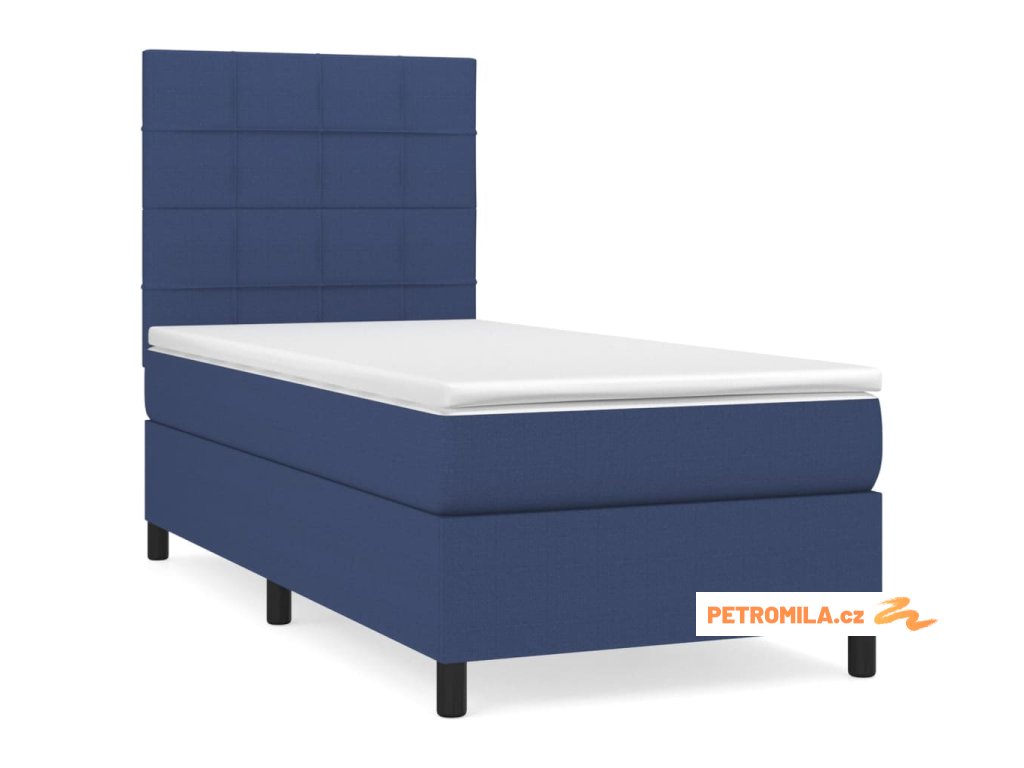 Box spring postel s matrací modrá 90x190 cm textil