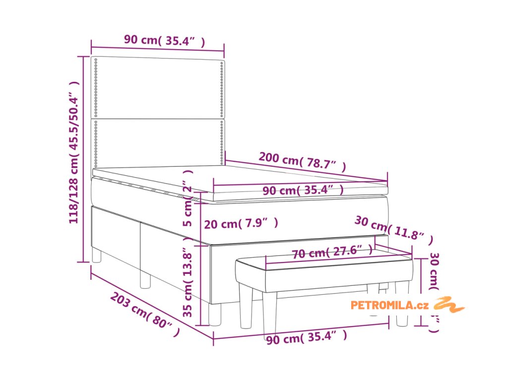 - Rozměry: 203 x 90 x 118/128 cm (D x Š x V)