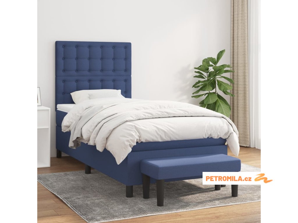 Box spring postel s matrací modrá 90x200 cm textil