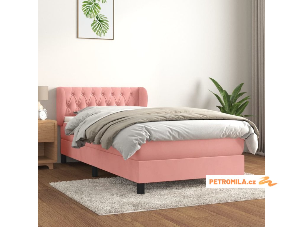 Box spring postel s matrací růžová 100x200 cm samet
