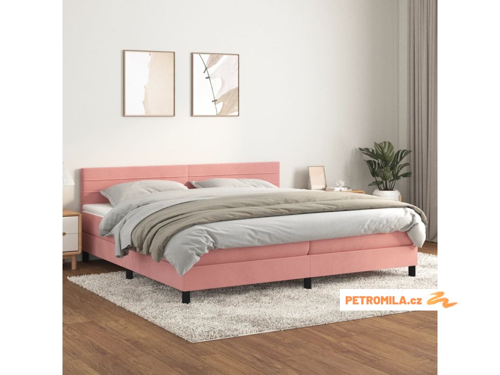 Box spring postel s matrací růžová 200x200 cm samet