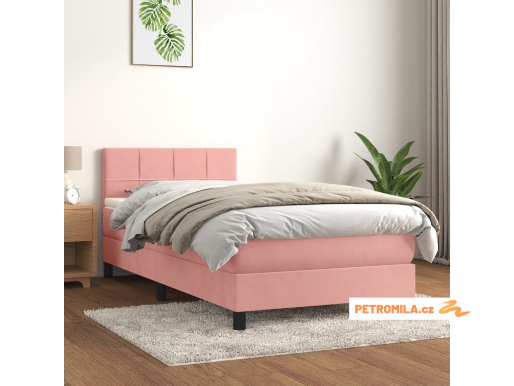 Box spring postel s matrací růžová 80 x 200 cm samet