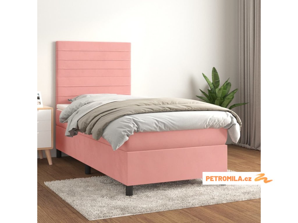 Box spring postel s matrací růžová 90x190 cm samet