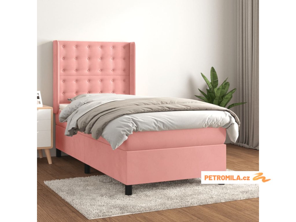 Box spring postel s matrací růžová 90x200 cm samet