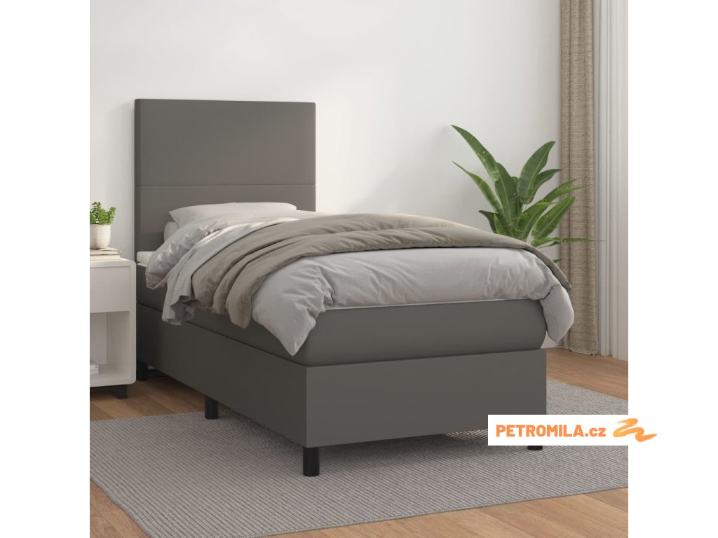 Box spring postel s matrací šedá 100x200 cm umělá kůže