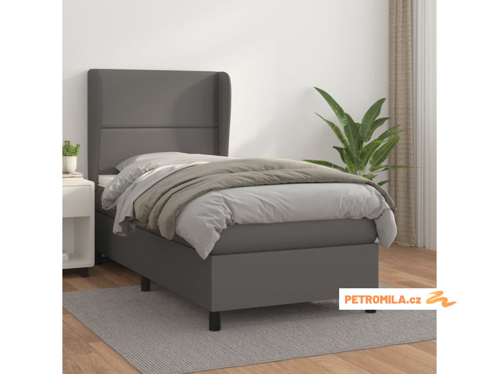 Box spring postel s matrací šedá 100x200 cm umělá kůže