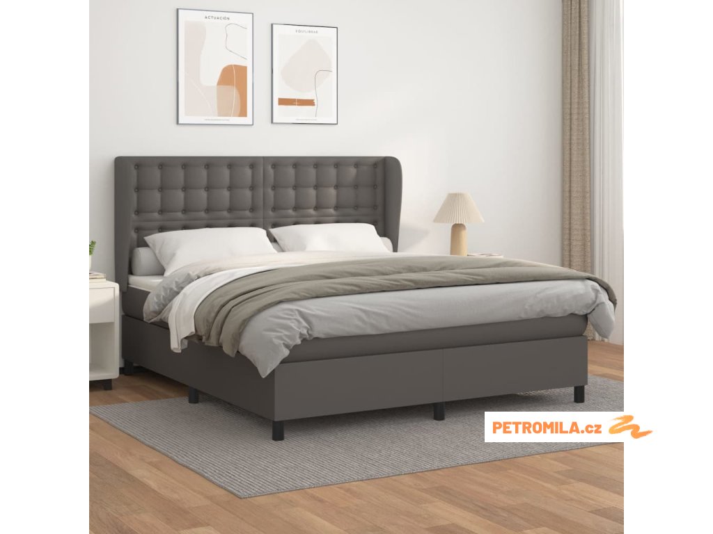 Box spring postel s matrací šedá 160x200 cm umělá kůže