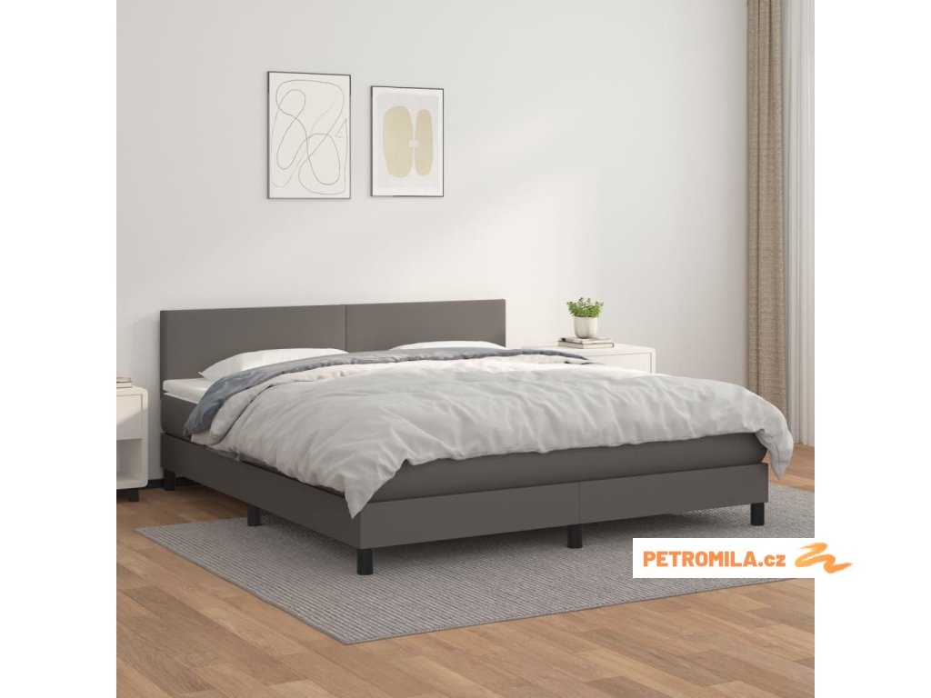 Box spring postel s matrací šedá 160x200 cm umělá kůže