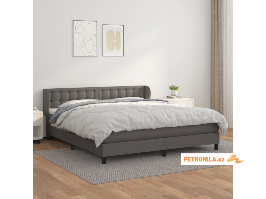 Box spring postel s matrací šedá 160x200 cm umělá kůže