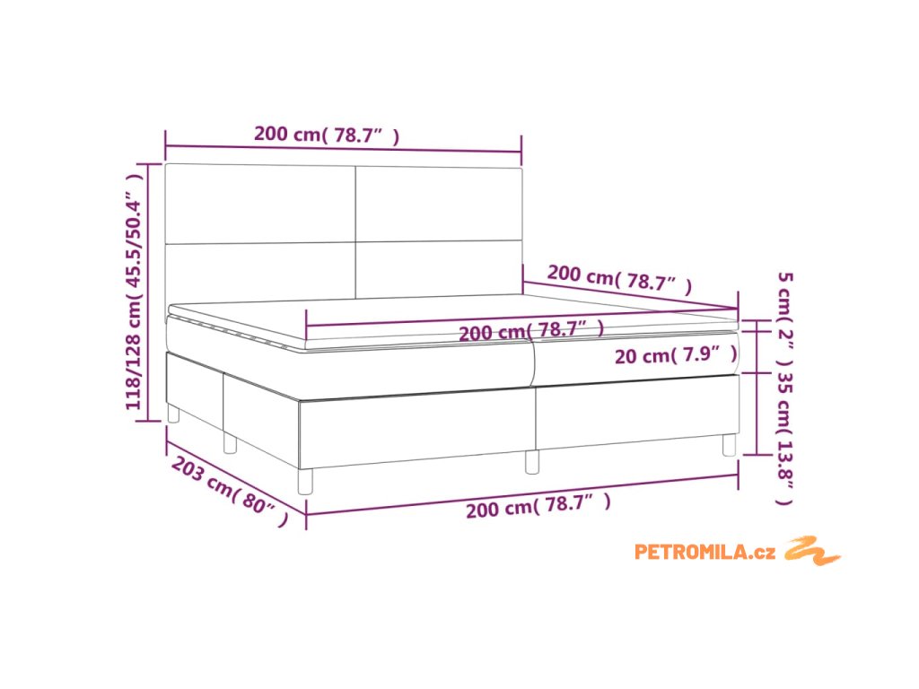 - Rozměry: 203 x 200 x 118/128 cm (D x Š x V)