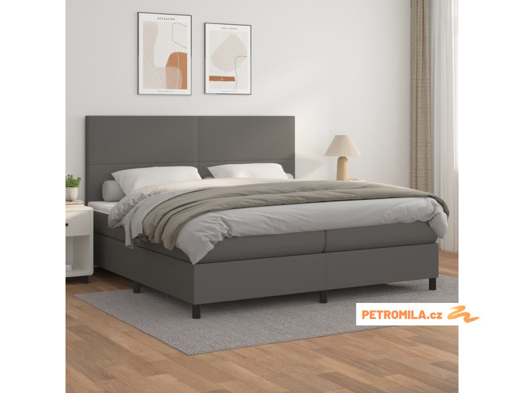 Box spring postel s matrací šedá 200x200 cm umělá kůže