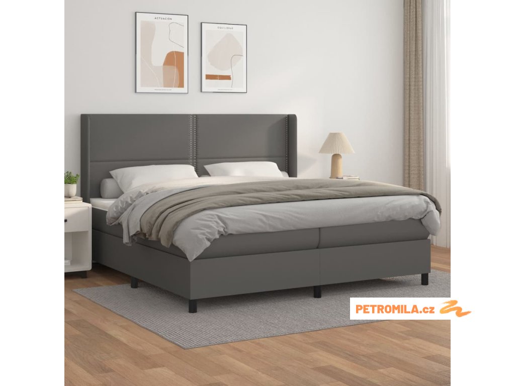 Box spring postel s matrací šedá 200x200 cm umělá kůže