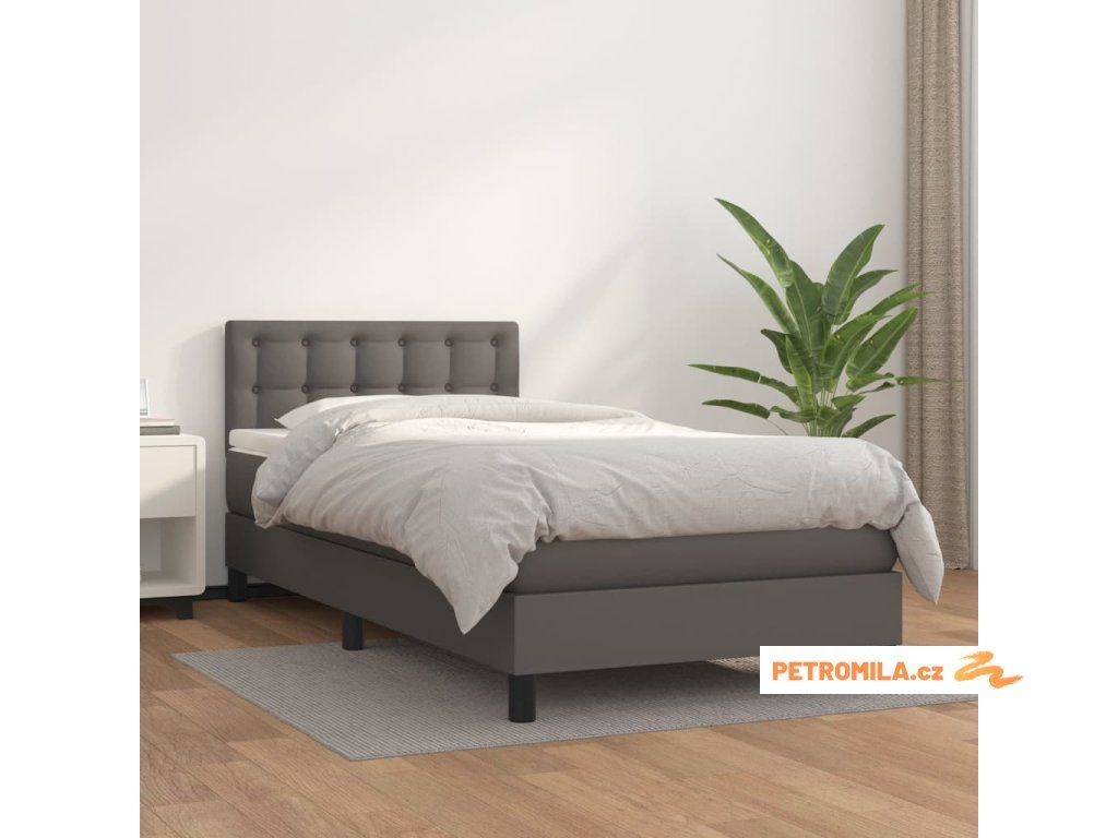 Box spring postel s matrací šedá 90x190 cm umělá kůže