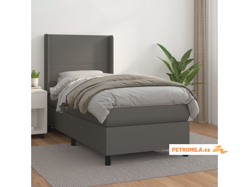 Box spring postel s matrací šedá 90x190 cm umělá kůže