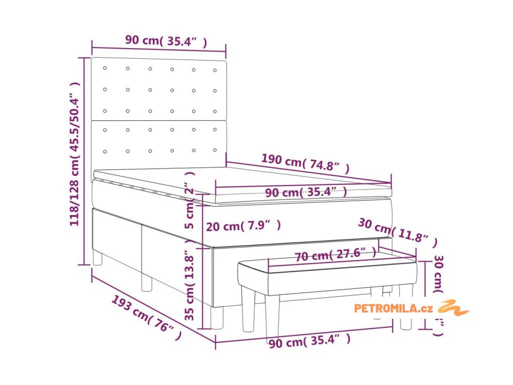 - Rozměry: 90 x 190 x 20 cm (Š x D x V)