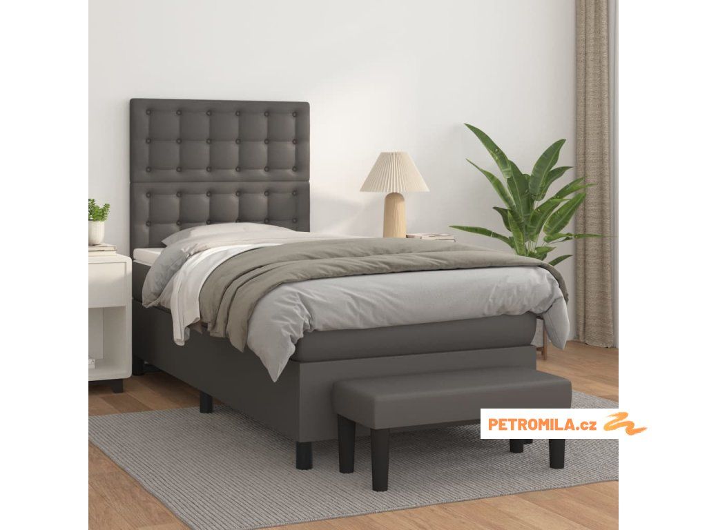 Box spring postel s matrací šedá 90x190 cm umělá kůže