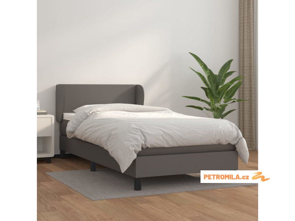 Box spring postel s matrací šedá 90x190 cm umělá kůže