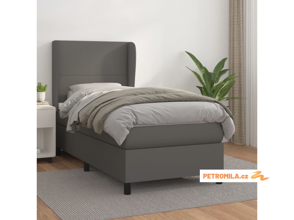 Box spring postel s matrací šedá 90x200 cm umělá kůže