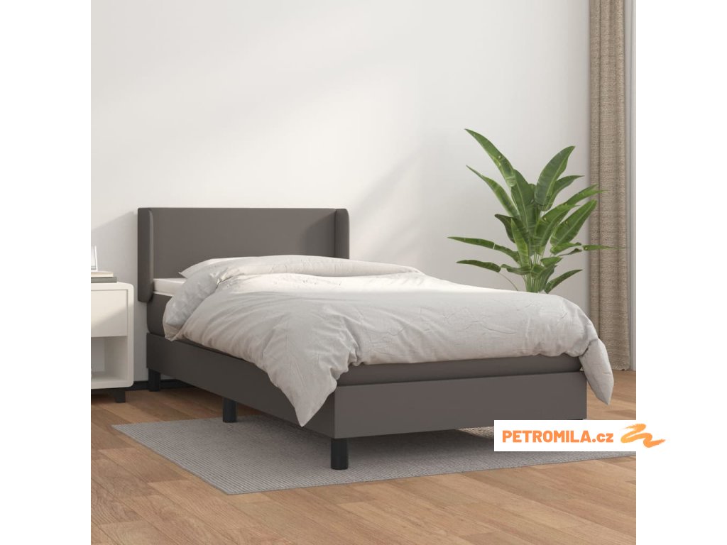 Box spring postel s matrací šedá 90x200 cm umělá kůže